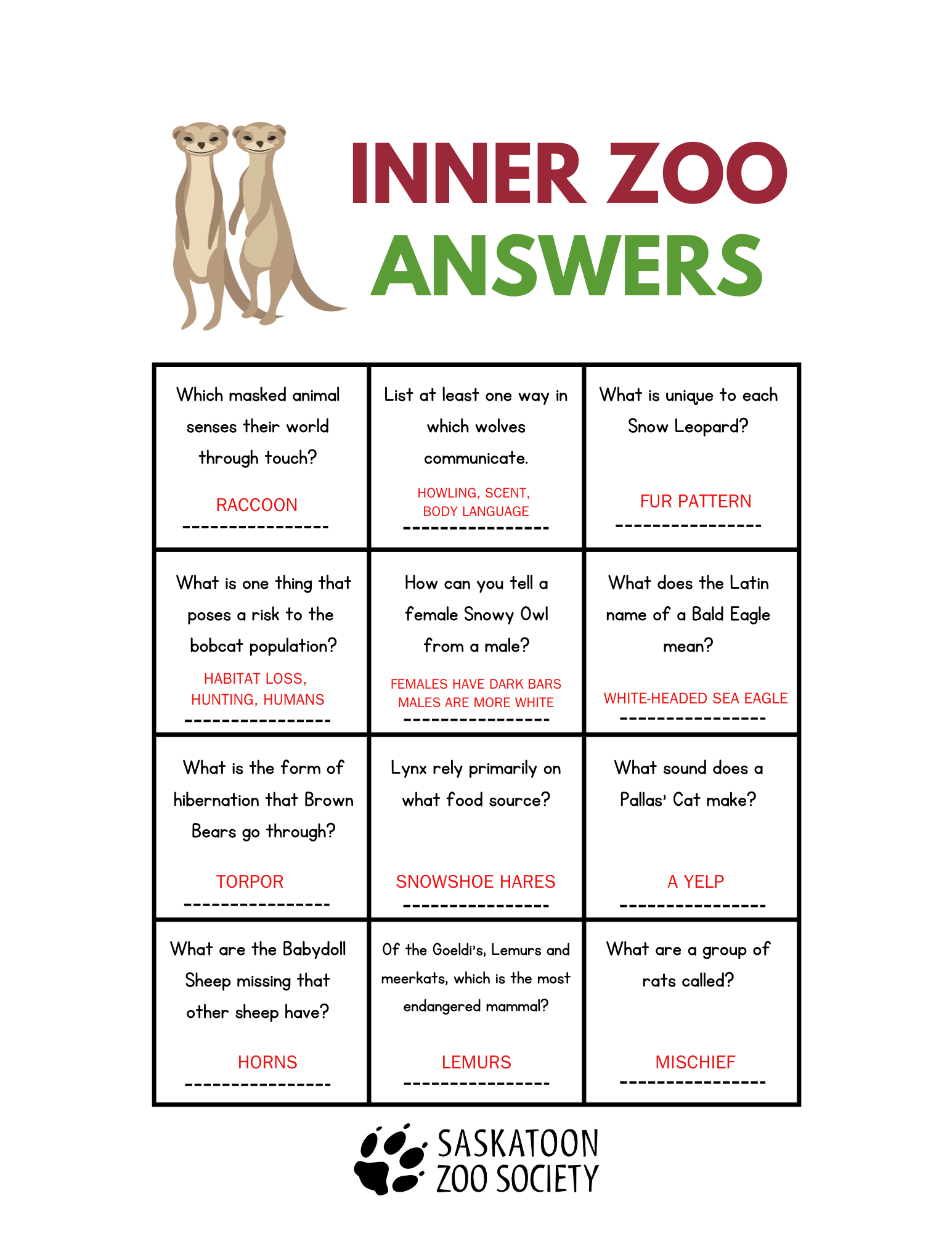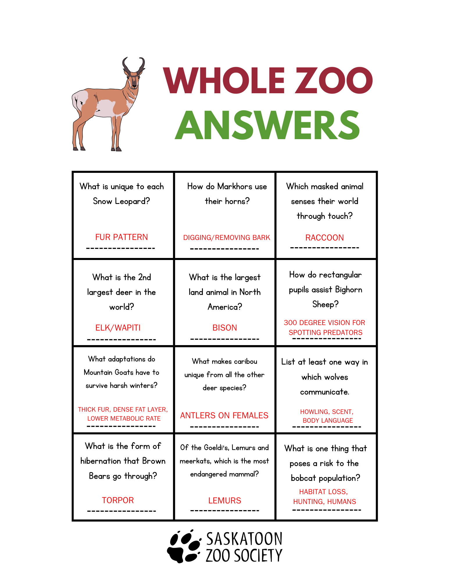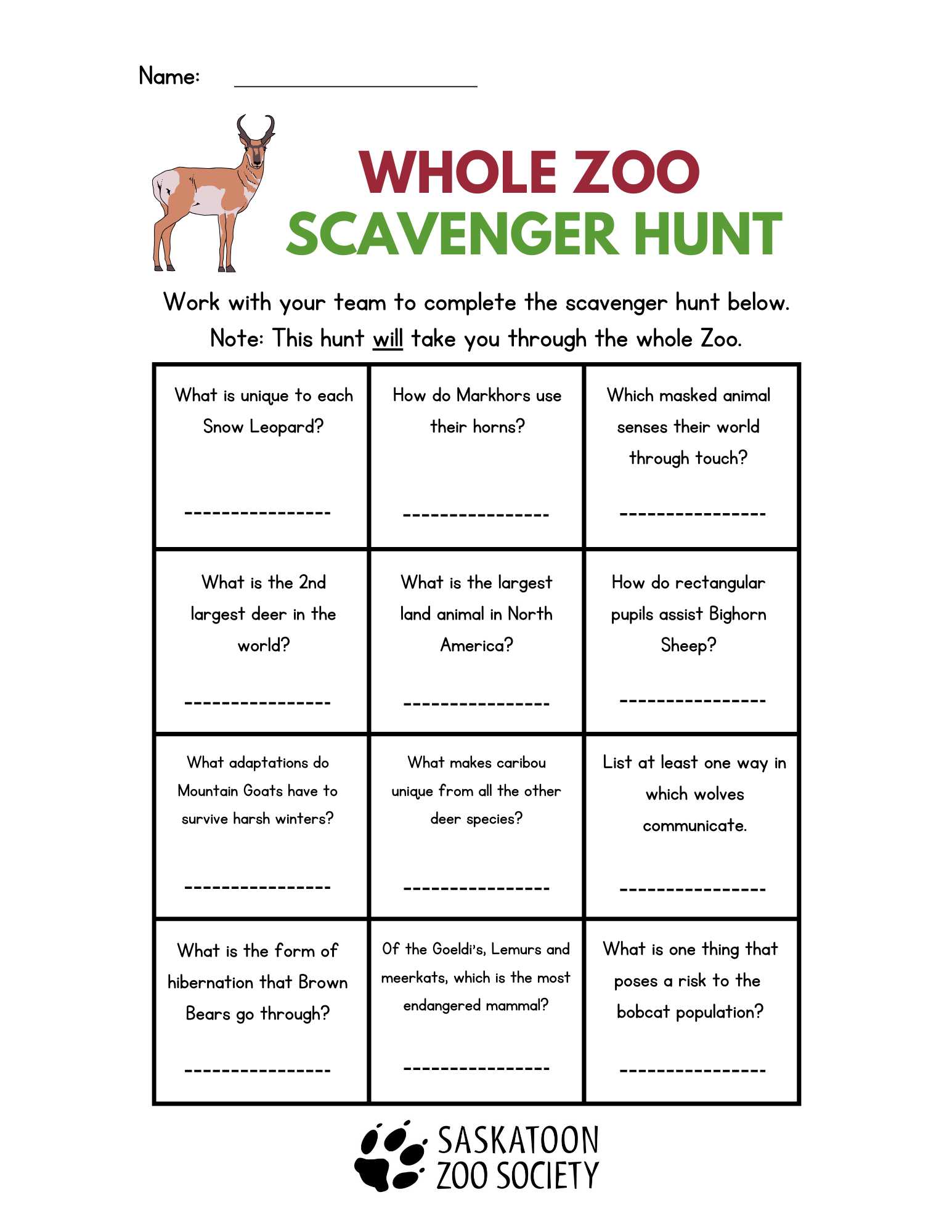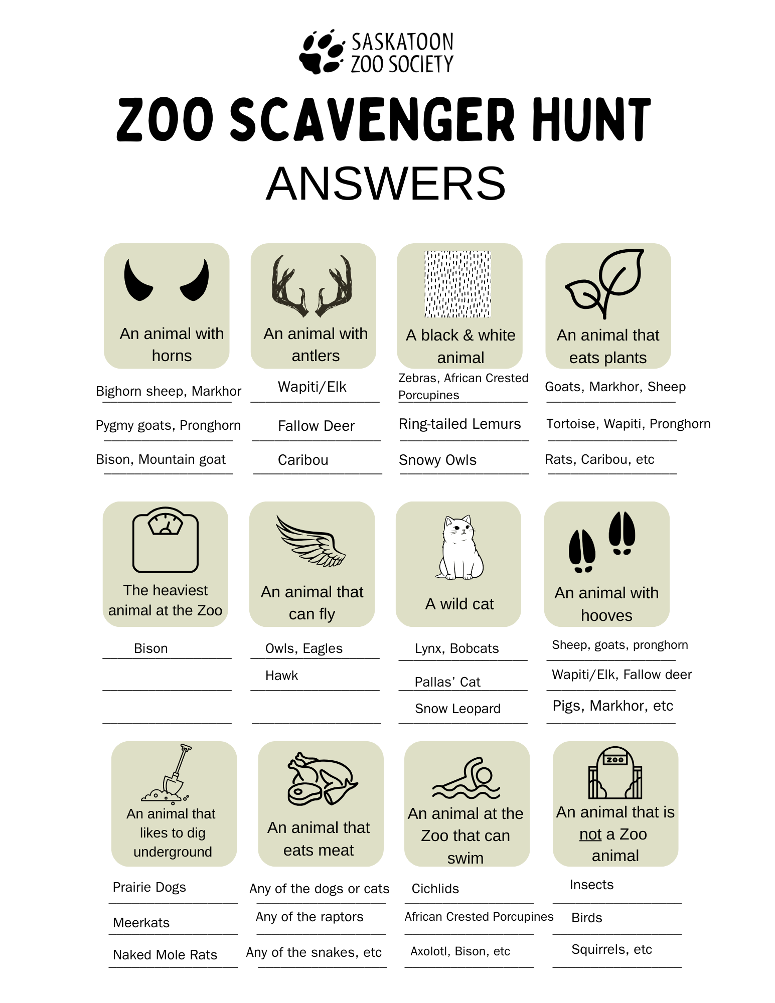 See if your students can answer these questions as they tour around the Zoo!