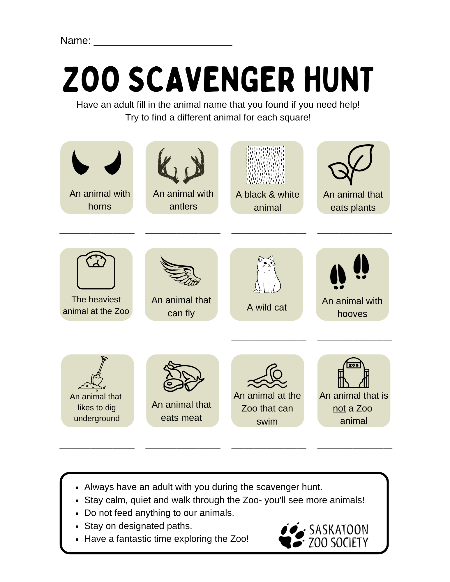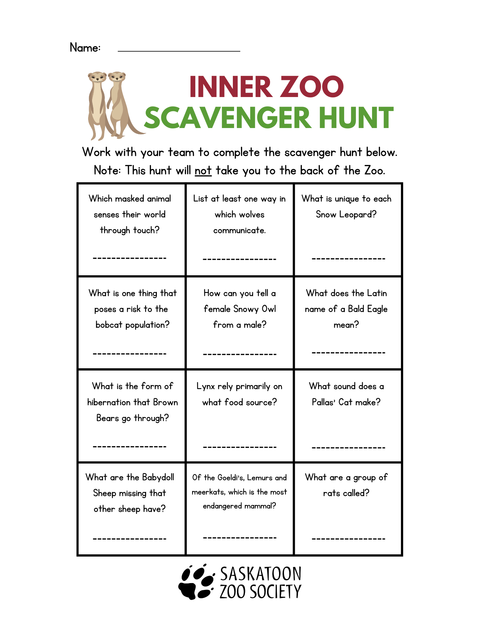 Inner Zoo Scavenger Hunt